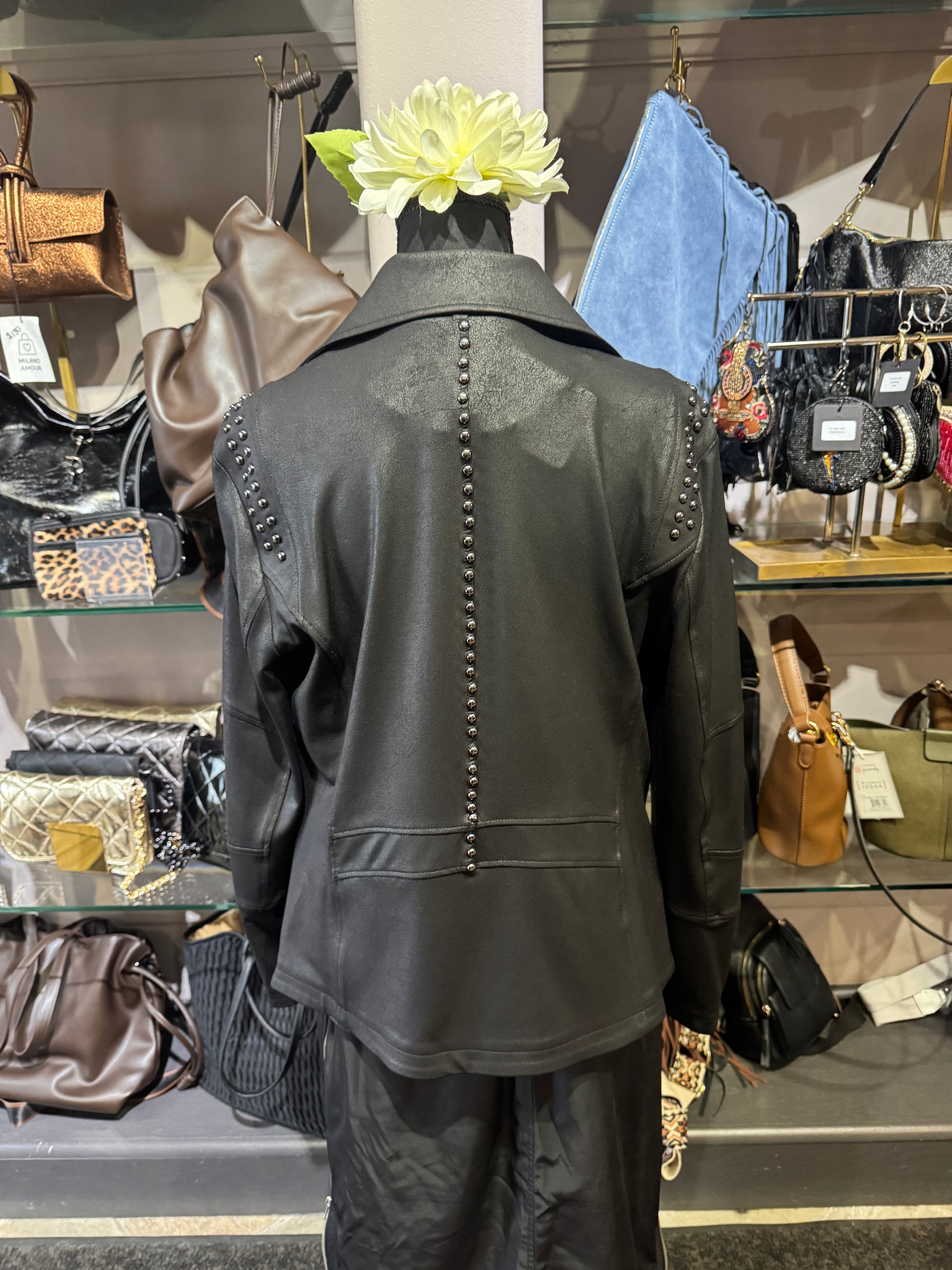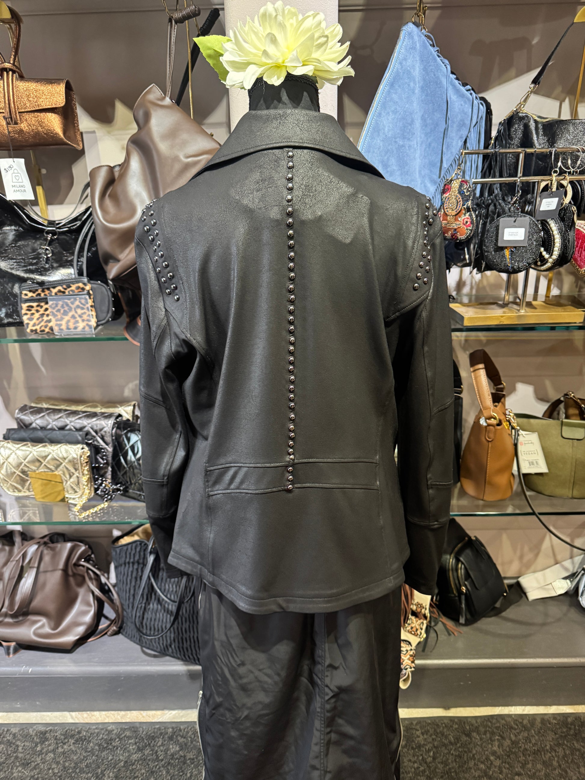 Clara Sun Woo Studded Liquid Leather Zip Front Moto Jacket