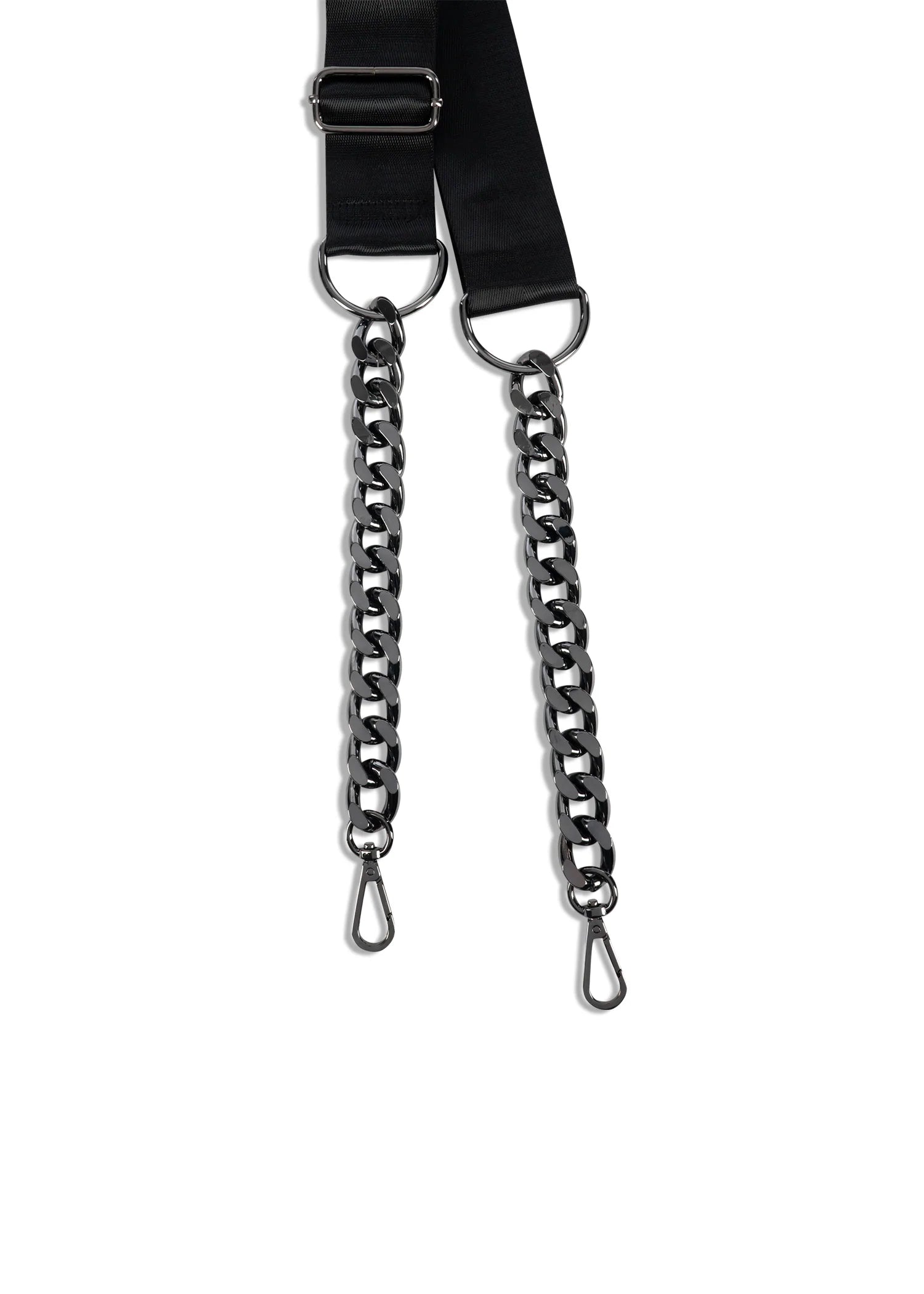 Adjustable crossbody strap with gunmetal chain hardware. 2 in.