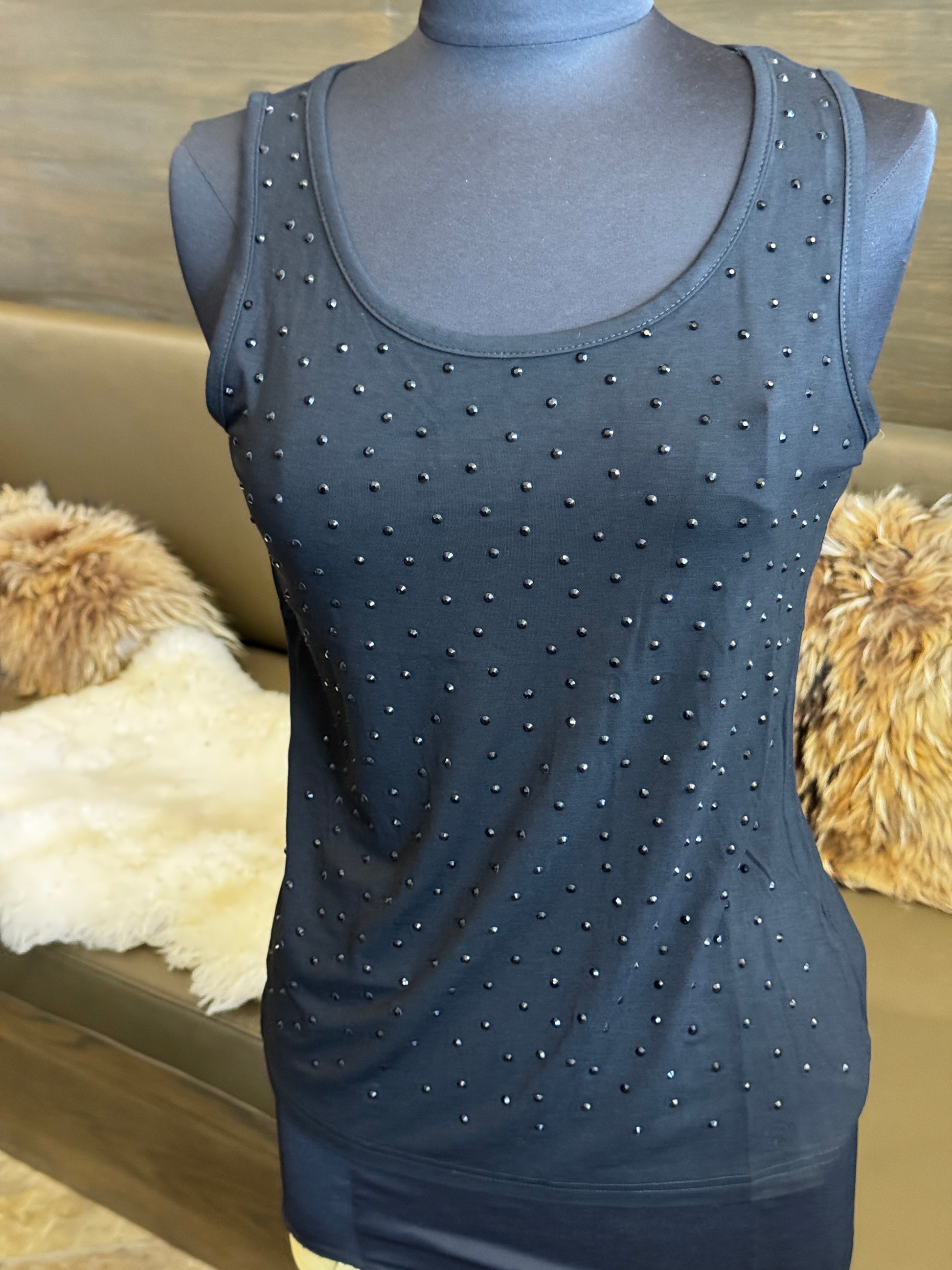 AZI Jade Crystal Studded Sleeveless Tank Top
