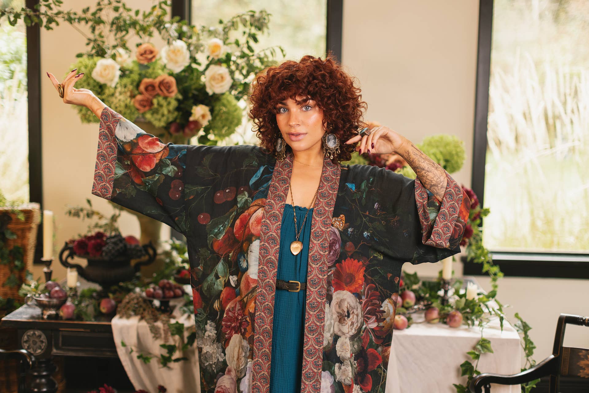 Market of Stars Flight of Fancy Opera Duster Kimono Robe Hummingbird Print