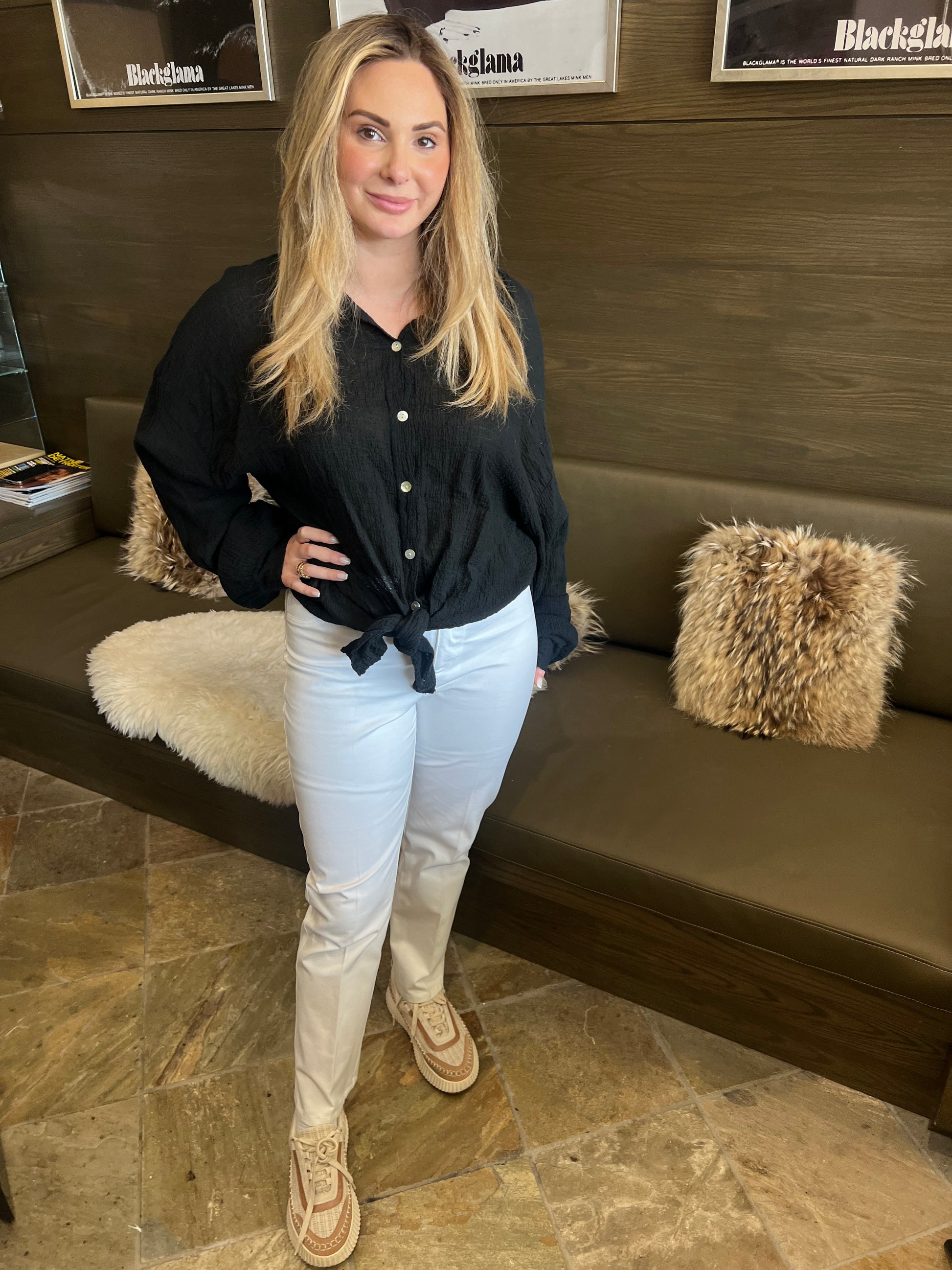 Cotton Gauze Button Down Shirt With Tie Front BLACK