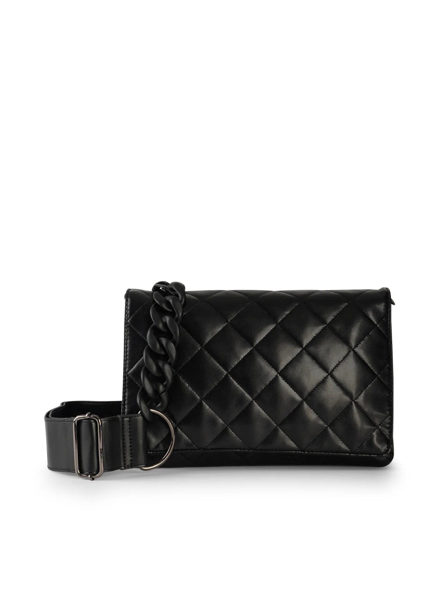 Includes two 1.5" straps-black tonal stripe strap and black acrylic matte chain strap.