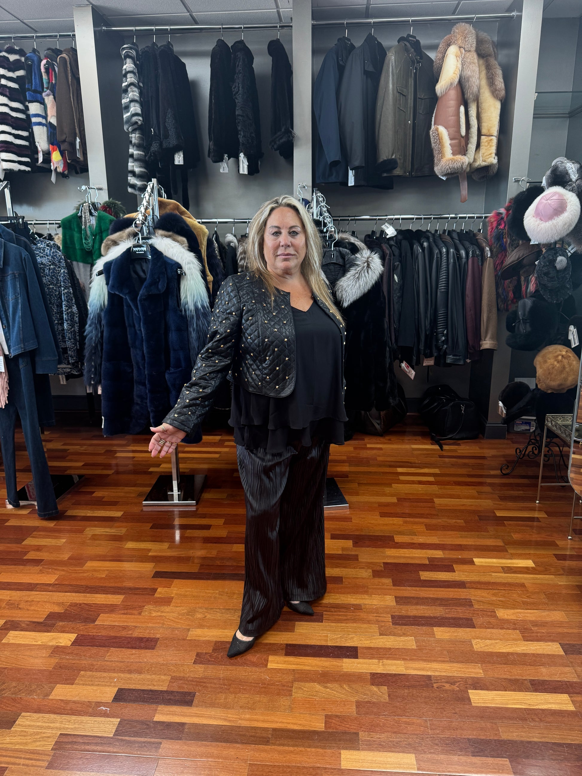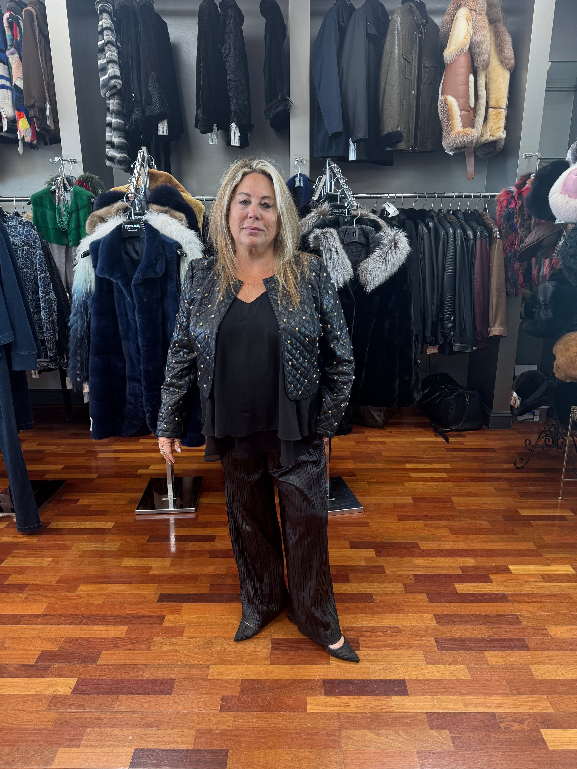 Insight Black Quilt Gold Studded Jacket