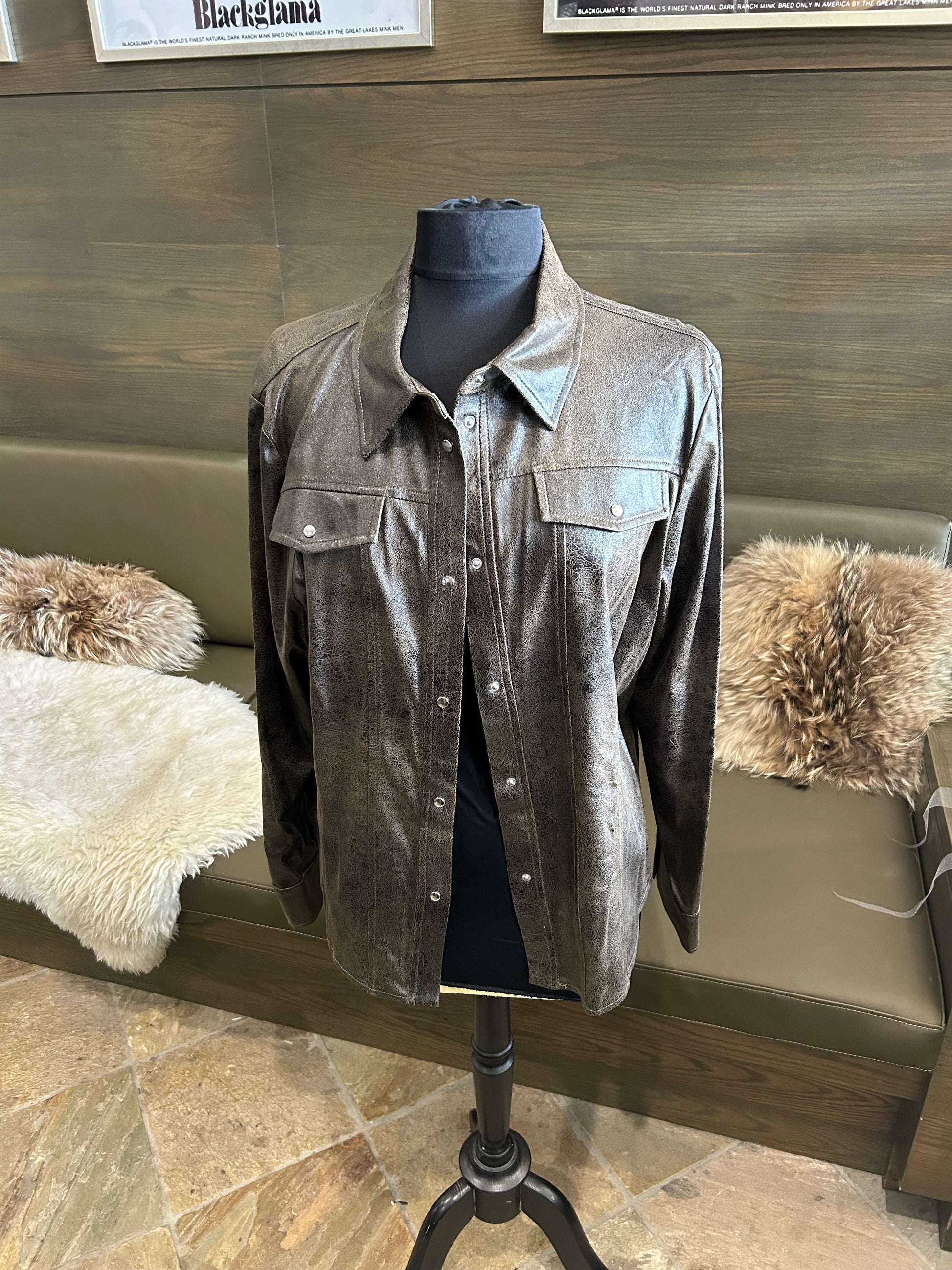 Insight Brown Leather Look Shacket Shirt Jacket Yellowstone