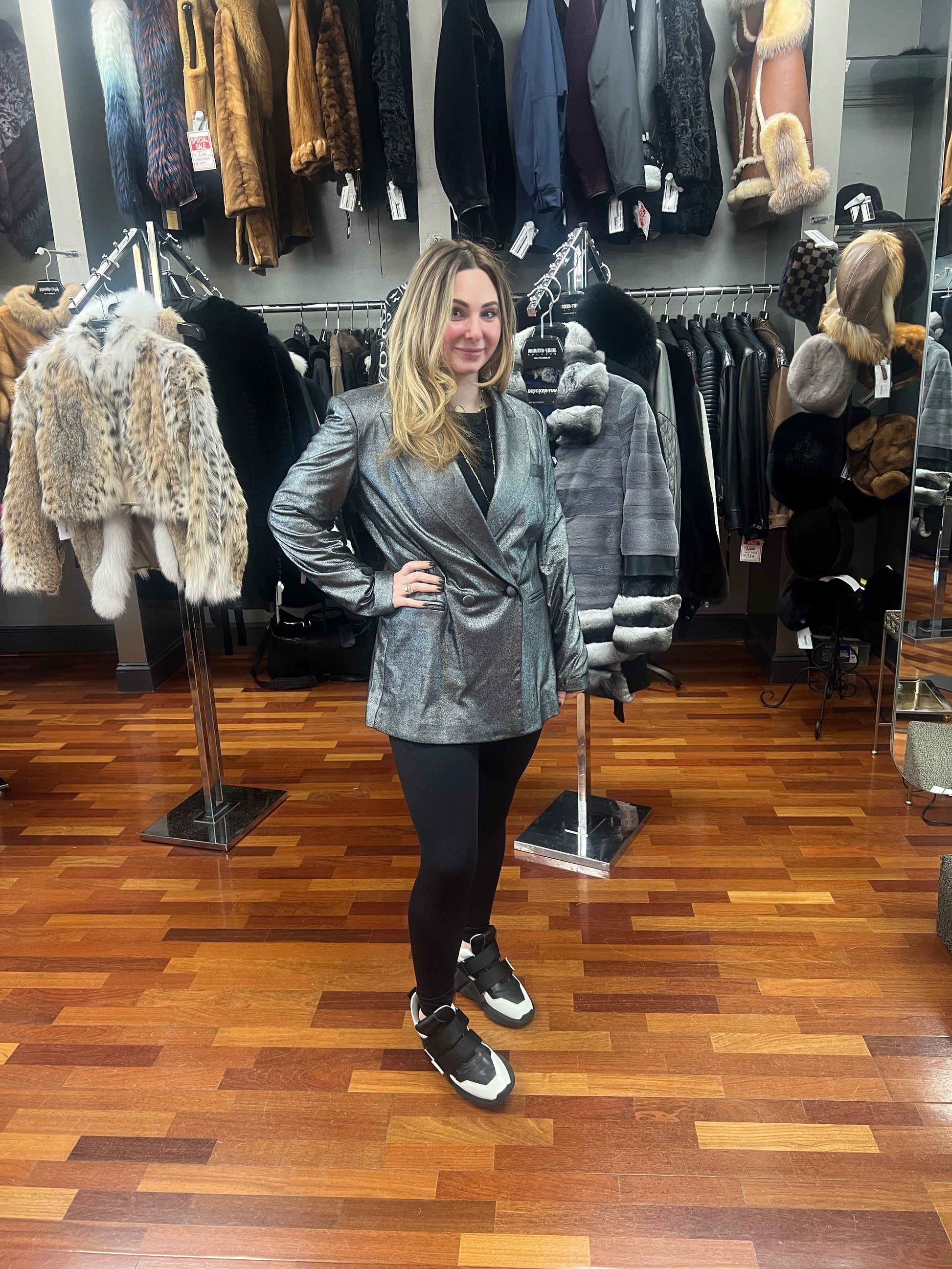 Insight Leather Look Black Blazer Jacket liquid lame silver metallic