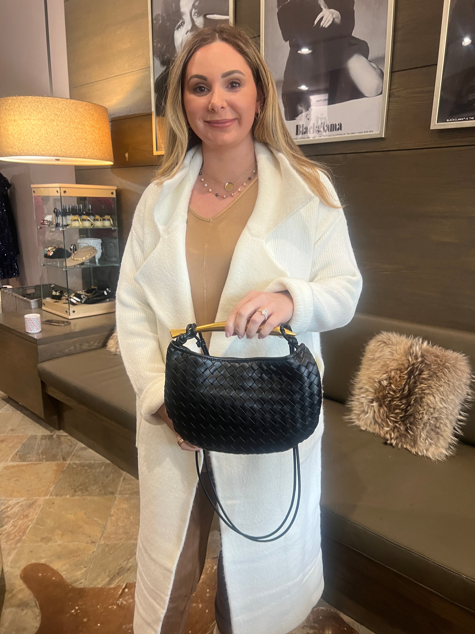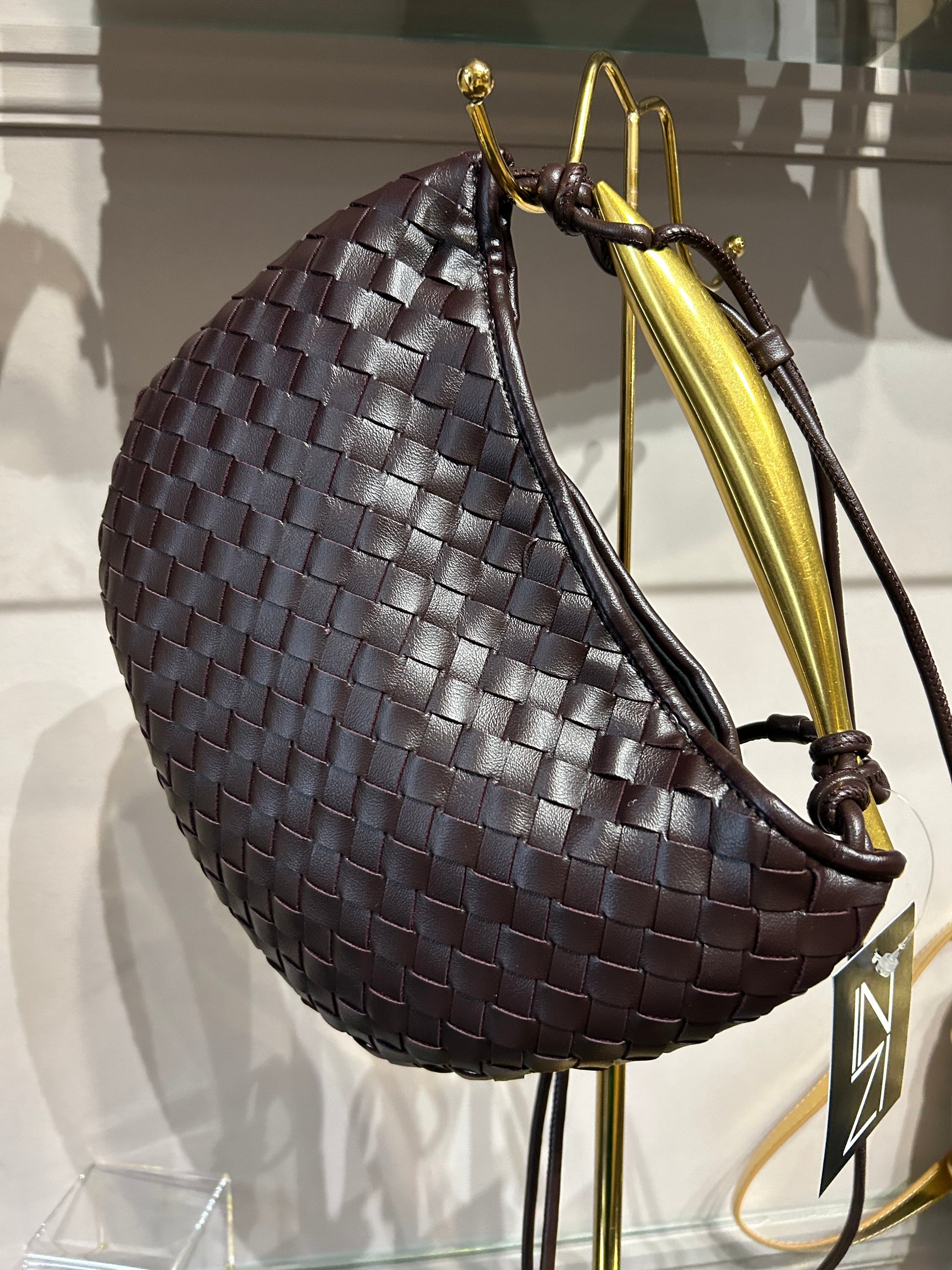 Inzi by High Fashion Woven Crossbody Handbag with Gold Handle