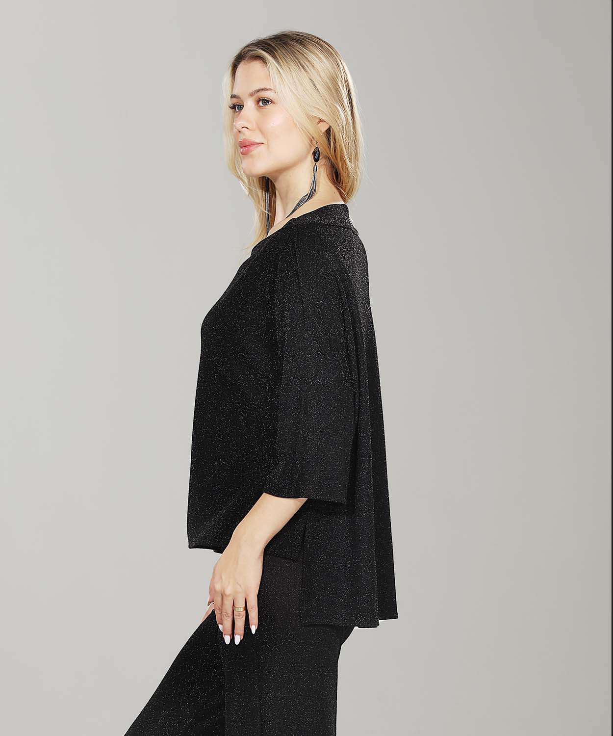 Last Tango High-Low 3/4 Sleeve Boat Neck Glitter Top