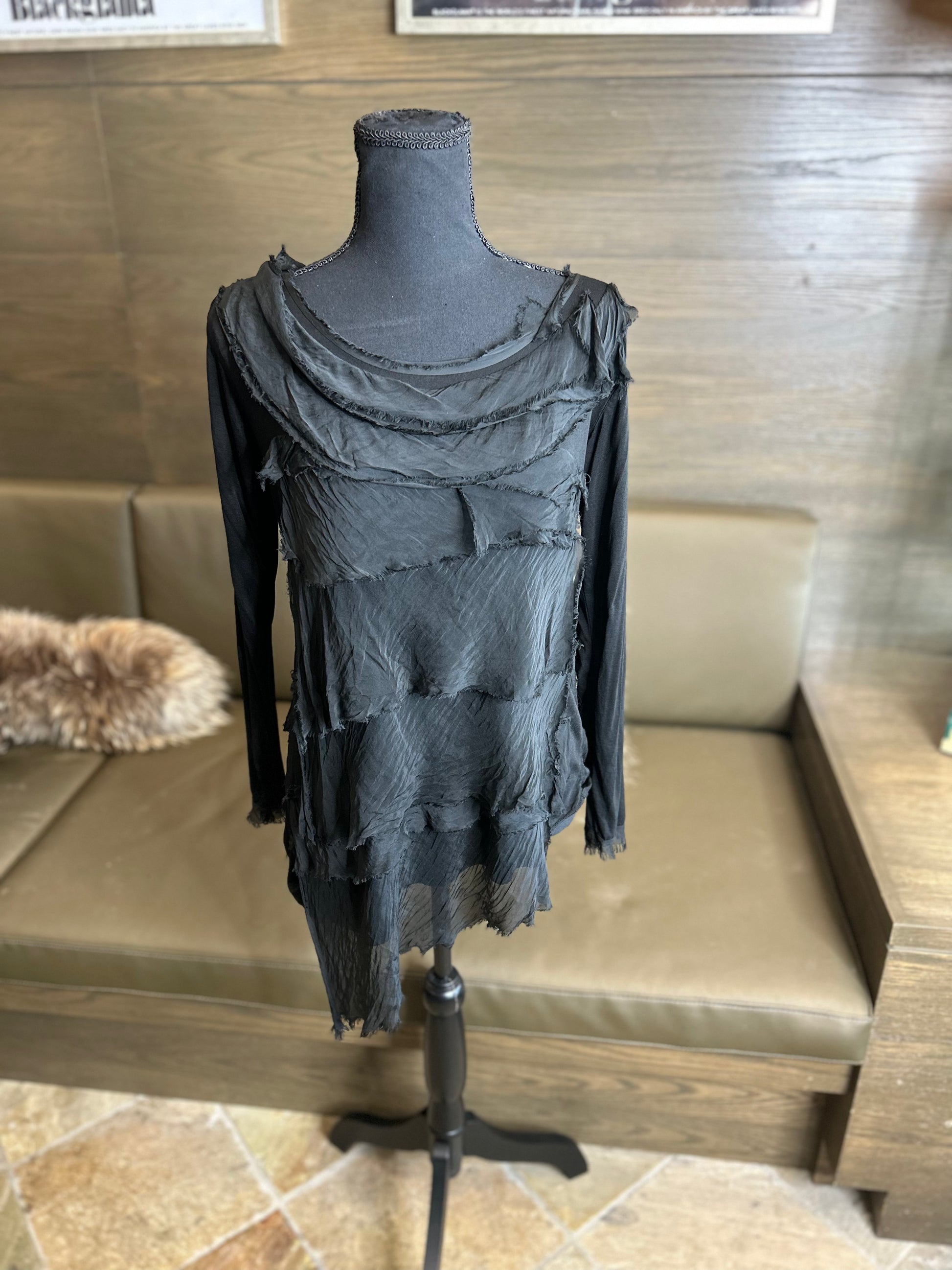 Silk Kaftan Long Sleeve Black Layered Silk Top One Size