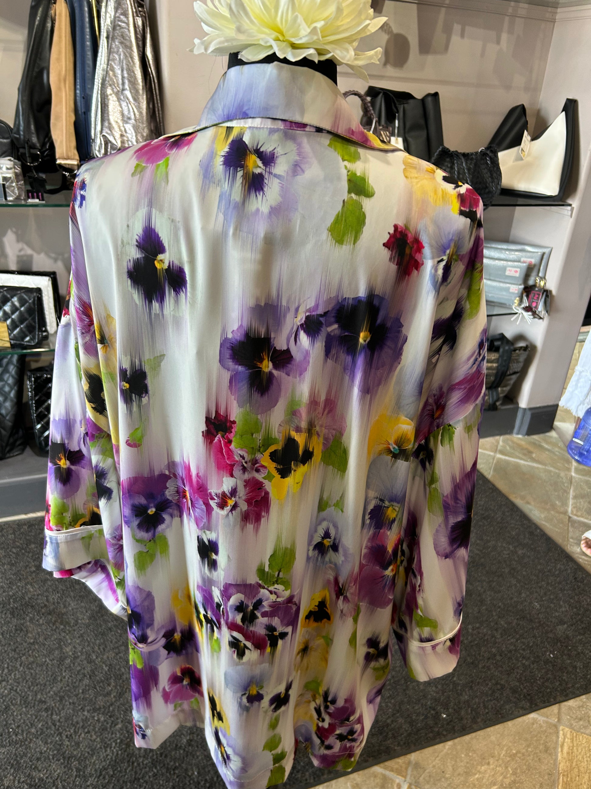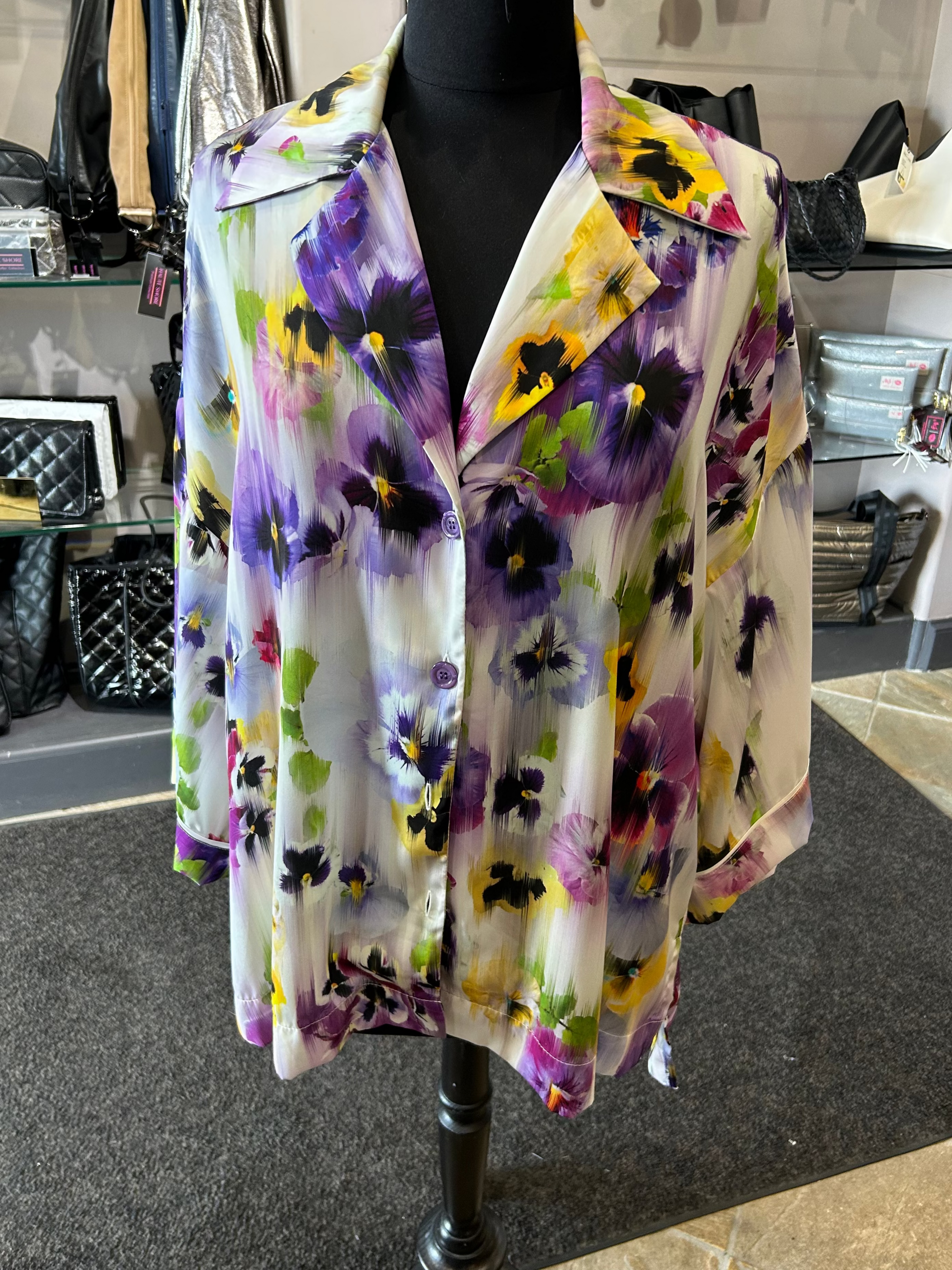 Mat Fashion Pansy Floral Button Down Shirt Sleeve Top