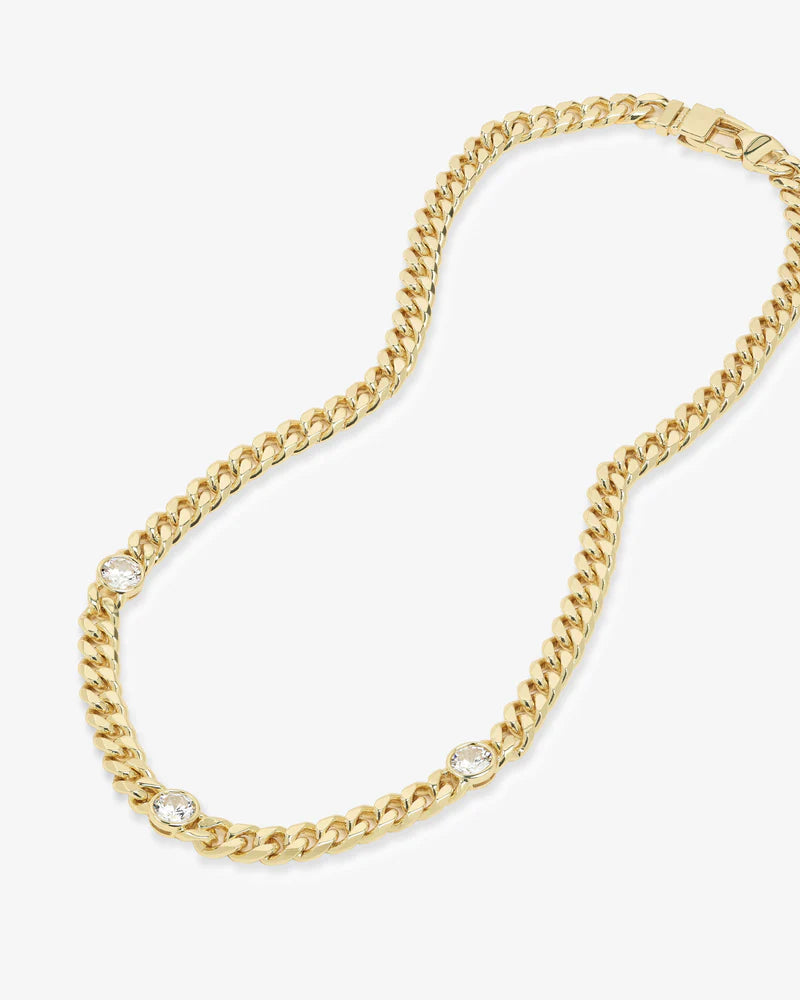 Chains + Diamonds = The Best of Both Worlds. Our best-selling Julian Cuban Chain Necklace becomes even more dazzling when three bezel-set simulated diamonds are added to the mix. Why? Because no one has ever been disappointed by adding diamonds. Gold