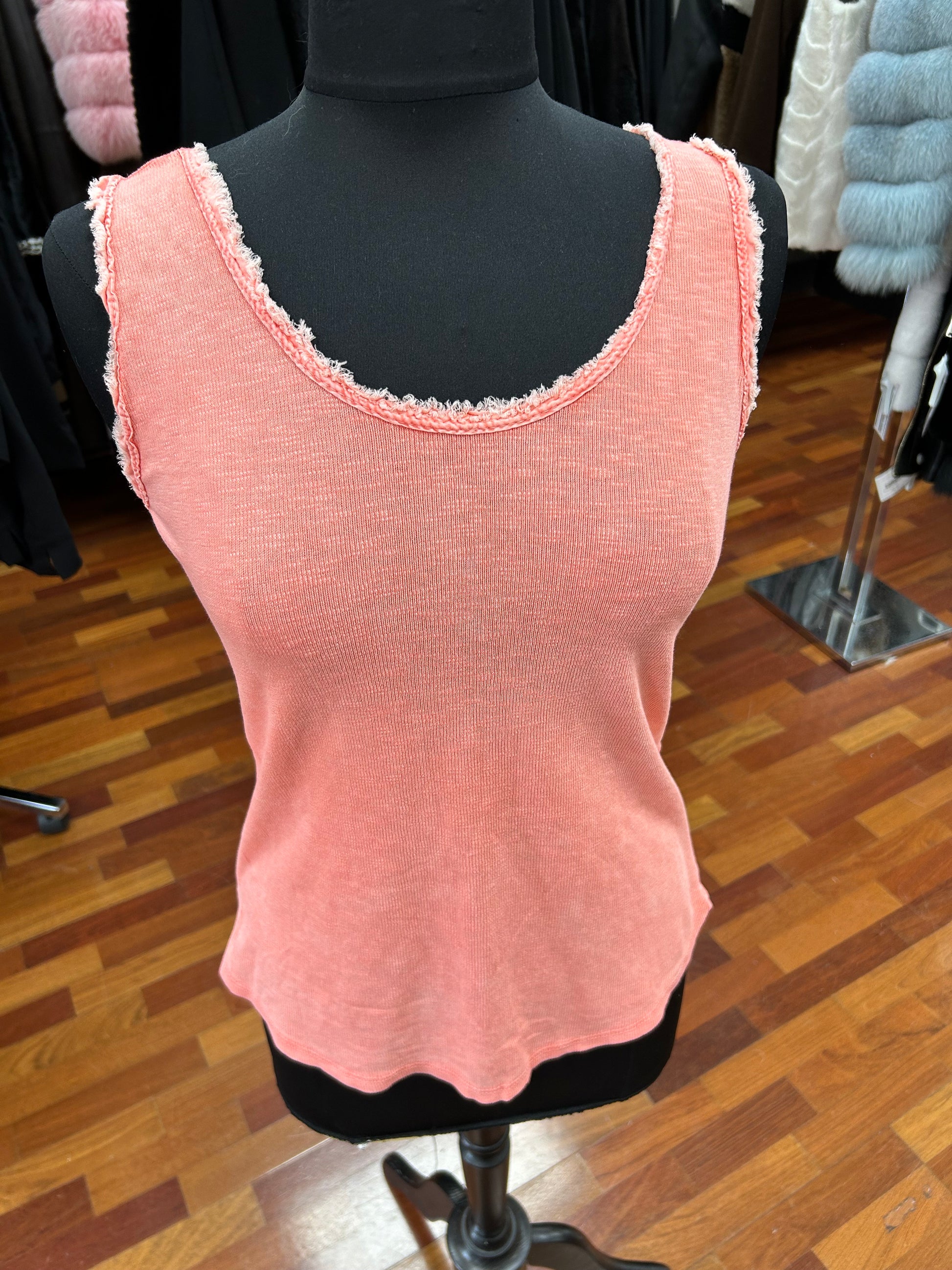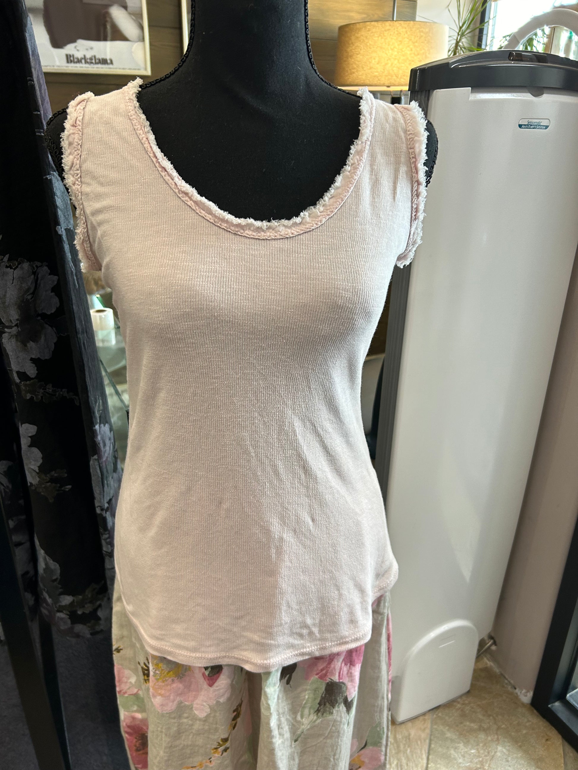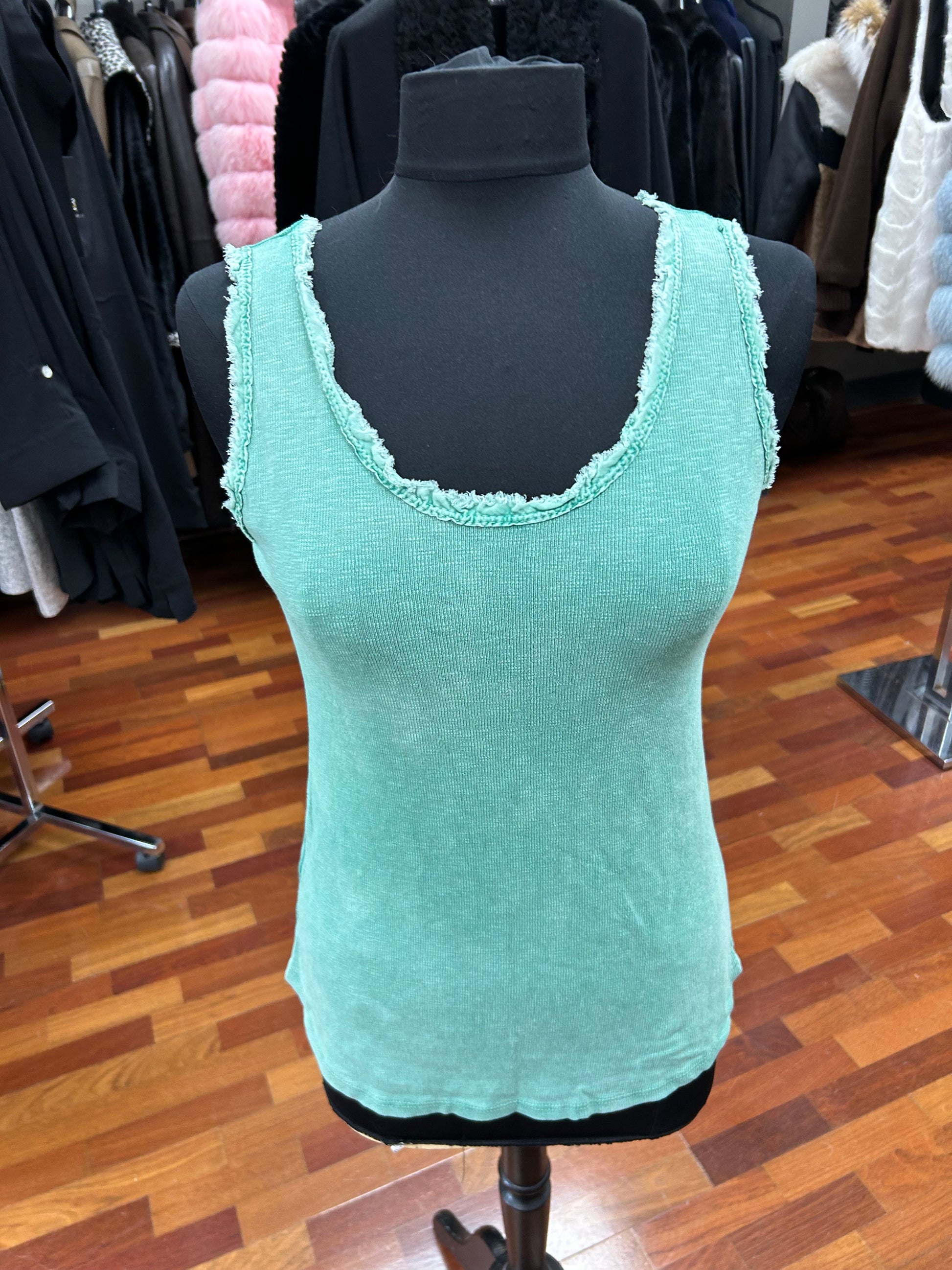 New Collection Made in Italy Tank Raw Edge Neck Line Top One Size Fits up to size 10