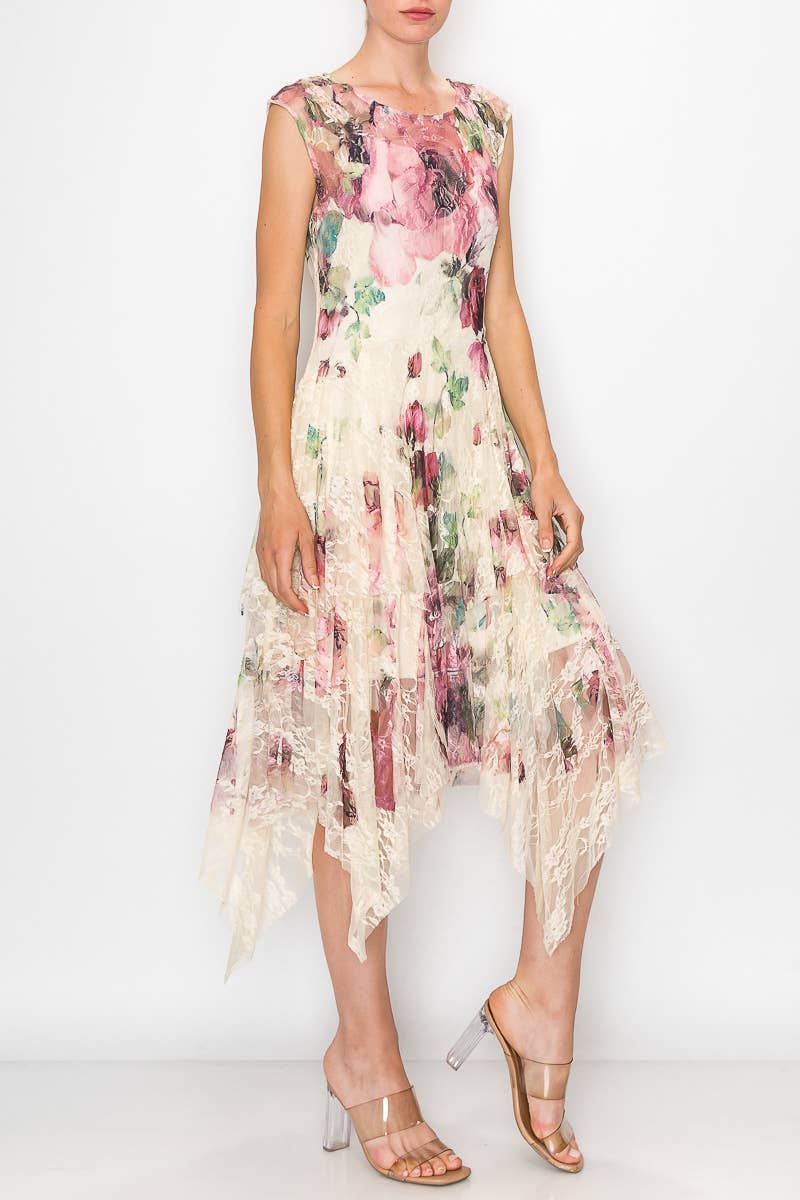 Origami Apparel~ Lace and Crochet inspired Discover the elegance of lace with our OLS-4609BG/BIG ROSE dress by Origami Apparel. This women's dress, inspired by our love for lace and crochet, is beautifully lined and adorned with unique prints. Perfect for any occasion, this dress reflects our commitment to on-trend design and timeless appeal.