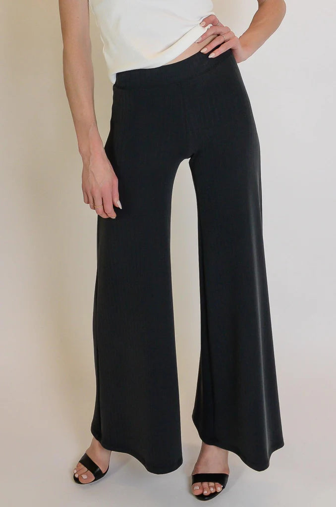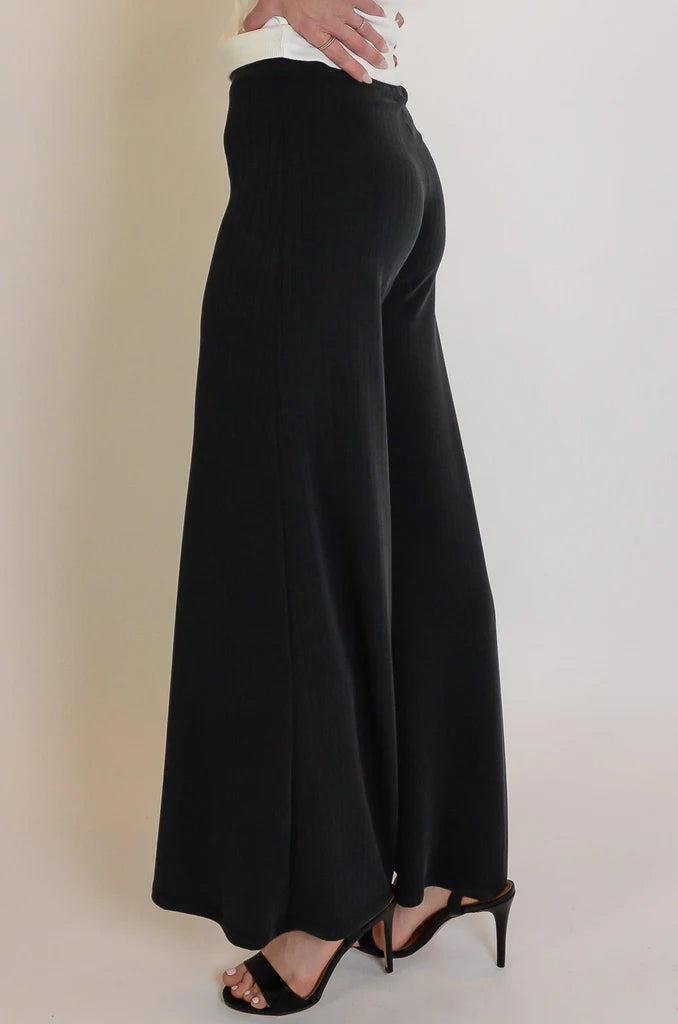Meet the Deka Pant, our new palazzo pant! This style is fitted through the waist and hip and lengthens into beautiful flare legs. It's made from a medium weight double knit that has a rib knit look and an incredibly soft hand. The Deka Pant is the ultimate lounge pant that looks and feels chic for the office or a special event. Prepare to feel confident in any setting when you slip on your Deka Pant!