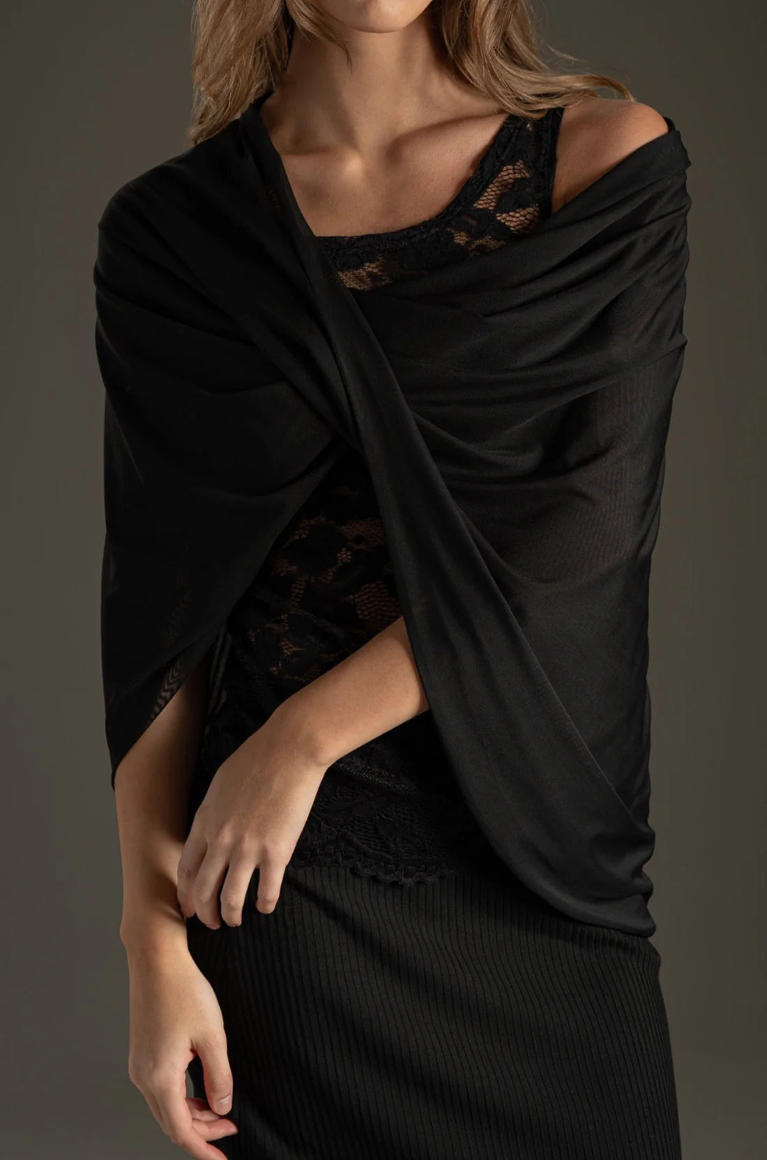 The Twist Shrug by Revir is the perfect little shoulder cover! This shrug is double layered, twisted in the front, and designed to sit on the shoulders. It's made from a soft and delicate mesh that easily drapes down the body. If you're looking for a simple and chic cover up for special events this holiday season, look no further! We know you'll love this elegant style.