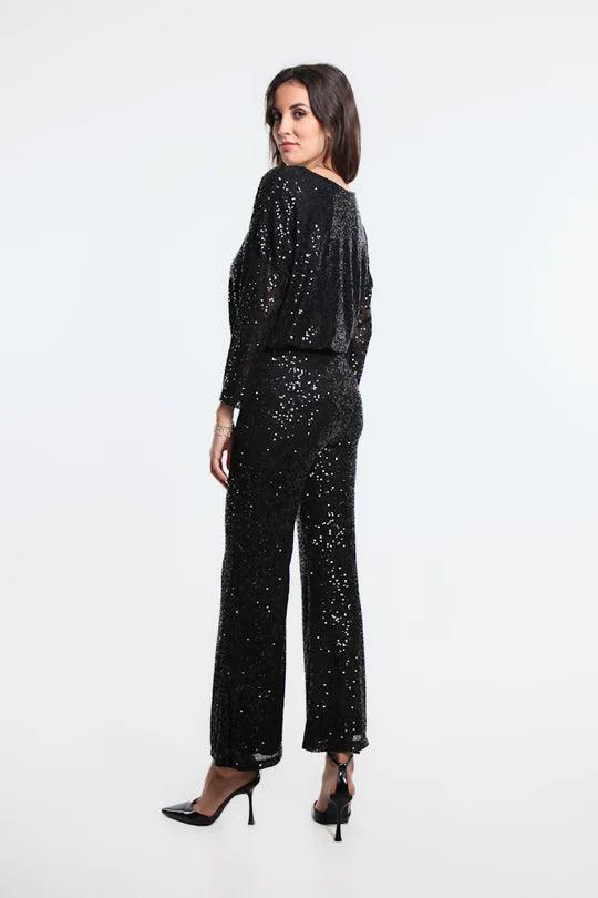 Tina Stephens Made in Italy Black Jada Sequin Pant Bottoms One Size