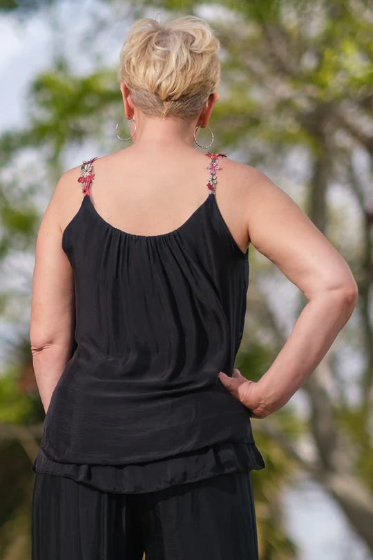 Tina Stephens Made in Italy Maria Silk Embroidered Garden Cami