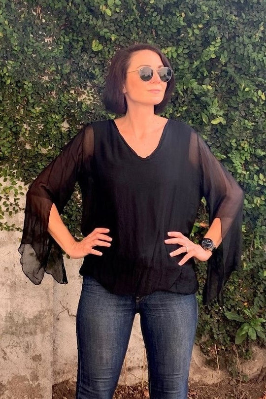 Tina Stephens Made in Italy Tiffany Silk Butterfly Bottom Open Wrist Top One Size