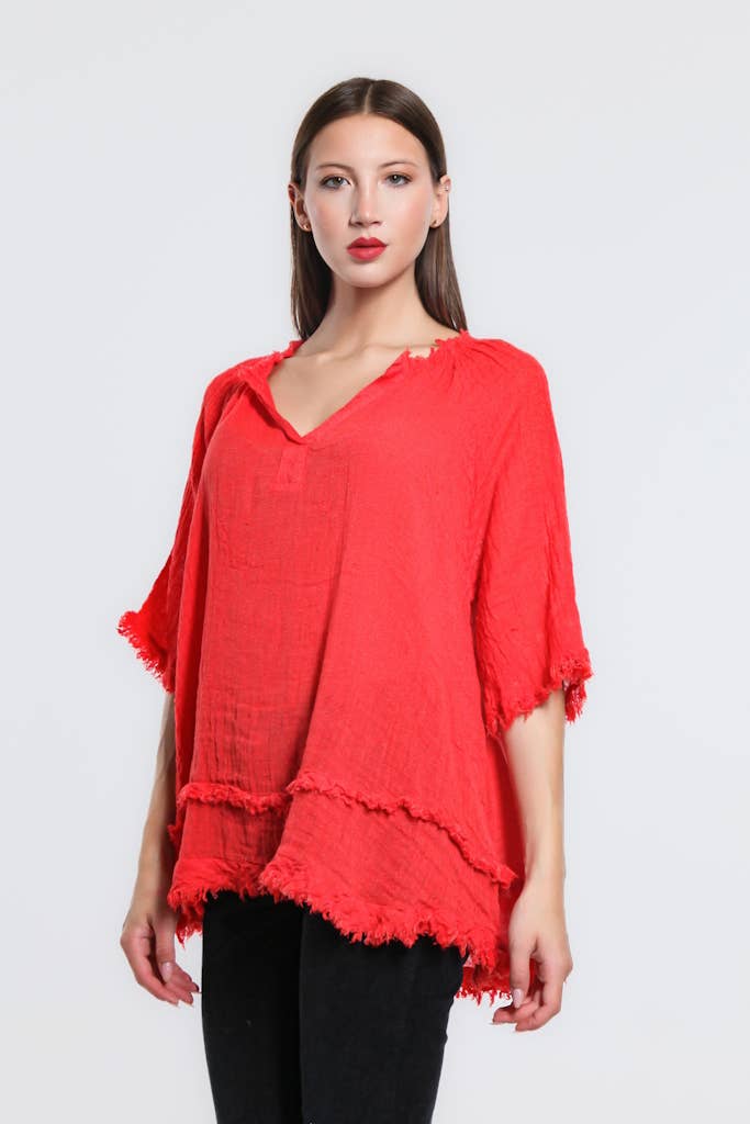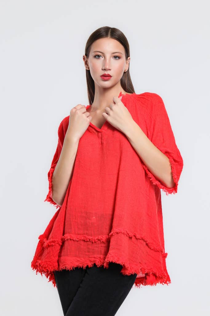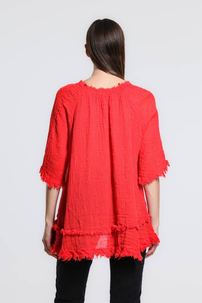 TINA Stephens Italy/Tees By Tina Zariah Crinkle Linen Raw Edge Top